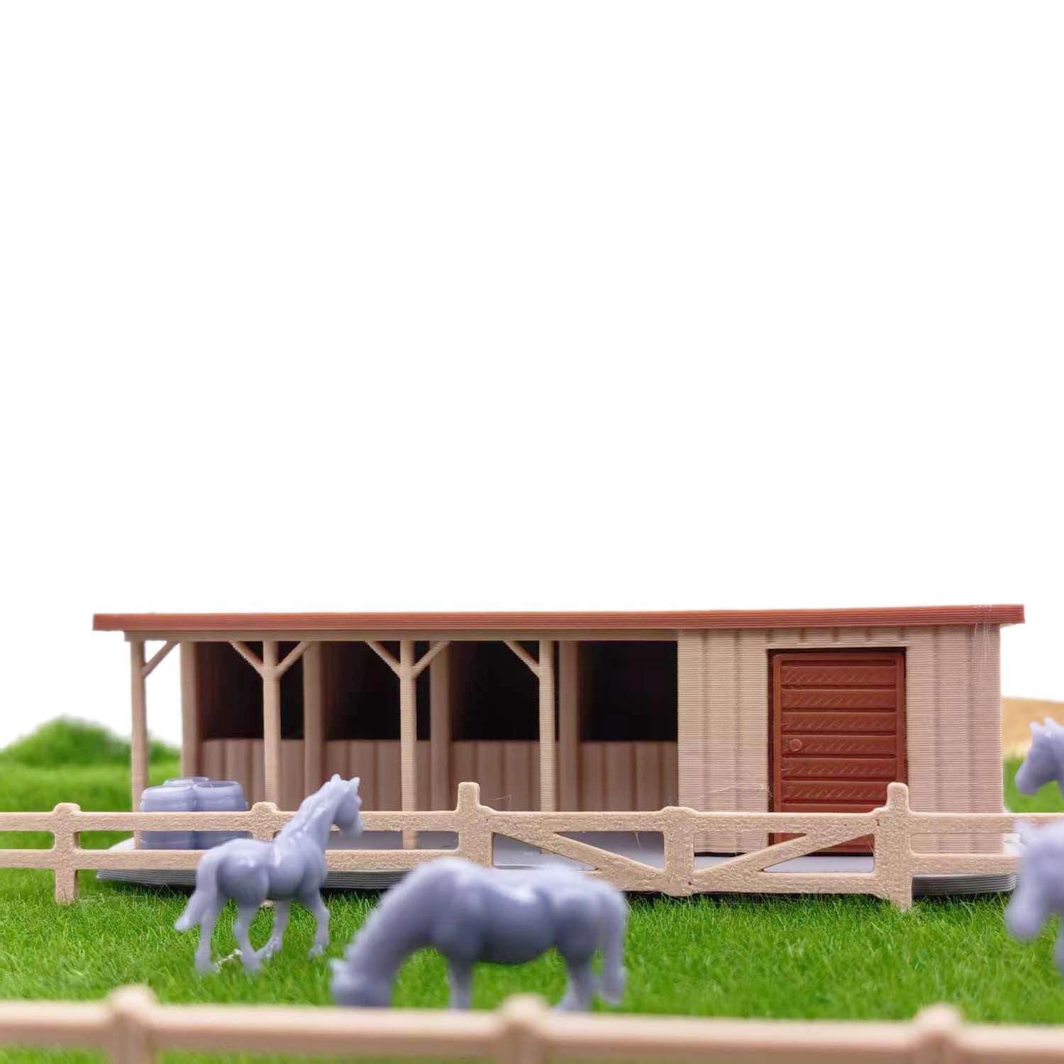 Small Country Stable w Horses and Grass 1:64 S Scale
