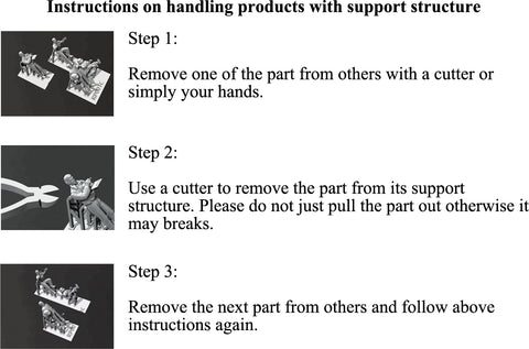 In case you received a product with support structure, please follow below graphic guide to remove it from the support safely: