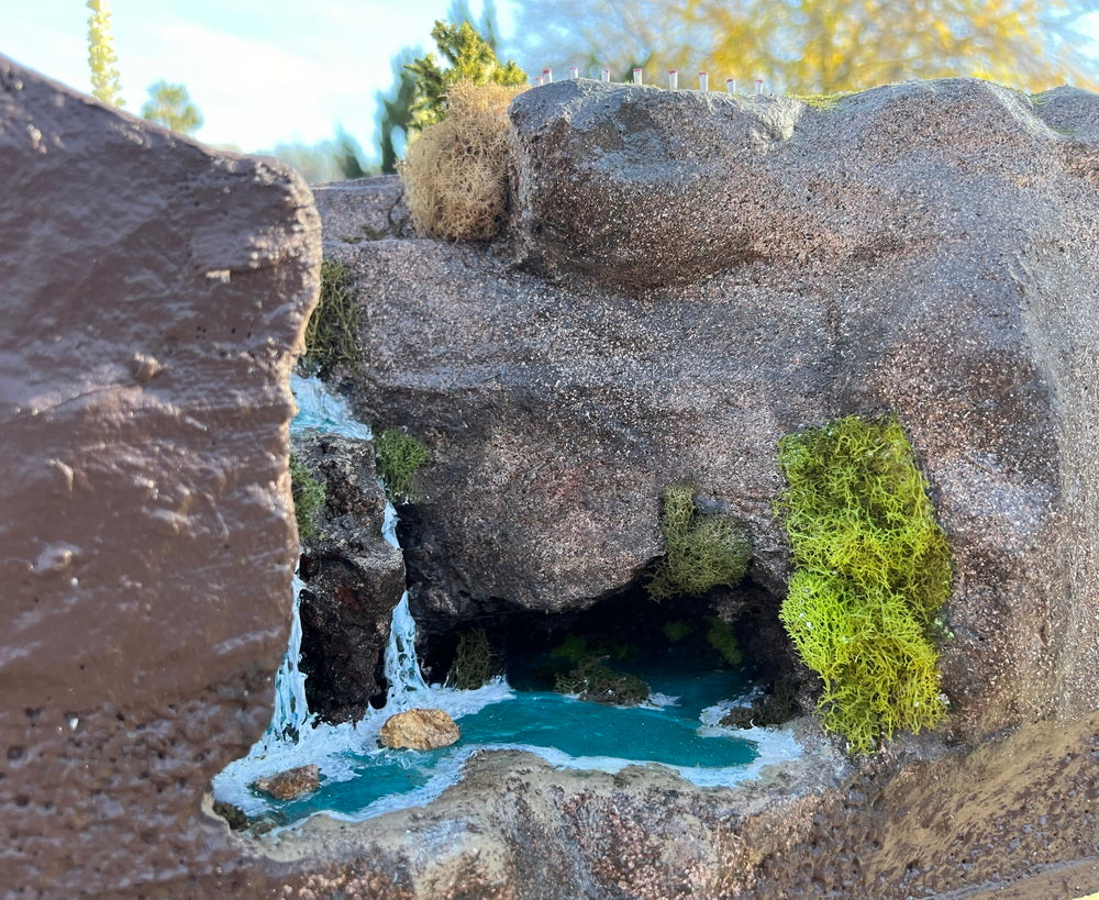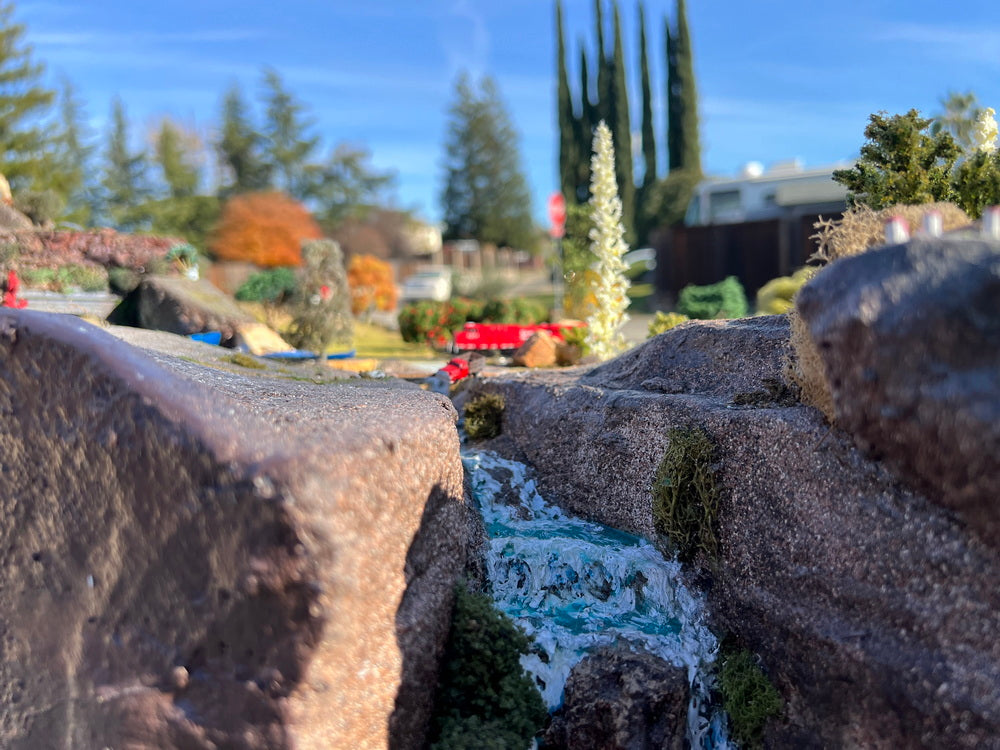 Very well done water and rocks. The sky and “California” ranch houses in the background look almost real.:)