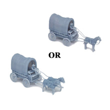This item includes: a travel wagon, a set of goods, a horse w rider
