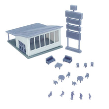 This item included: building kit, a clear plastic(for use as window/door glass), figure & interior accessory set(as pictured)