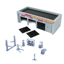 This kit includes: Auto service shop building, all details accessories as pictured, a decal sheet(cutting required)
