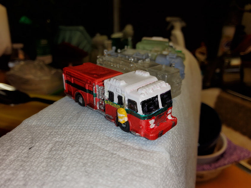 | N scale 3D printed Emergency Vehicles and Fire Apparatus custom detailed, painted and decaled, some also have Nano and Pico size, .0402nano, .0201pico, LEDs and custom Simulator Boards installed. These are for my own N scale modules and for sale to others. |